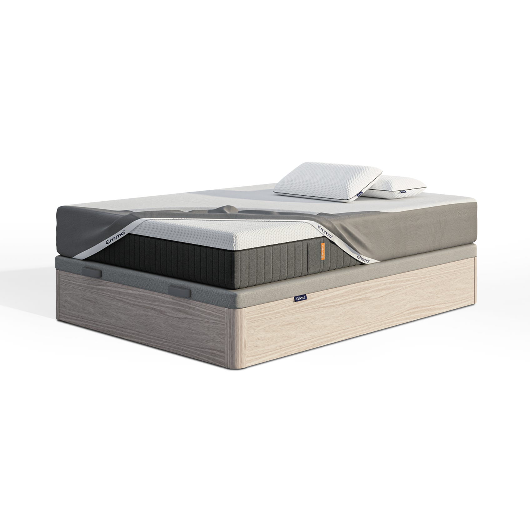 La mejor combinación de productos para disfrutar del confort de un hotel en casa. Contiene el canapé abatible de madera Emma + colchón Emma Hybrid Premium + Almohadas viscoelástica Original